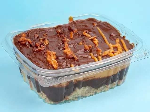 Mousse proteico a base de proteína aislada, cacao, leche descremada light endulzado con eritritol. con capaz de manjar proteico de mantequilla de maní.